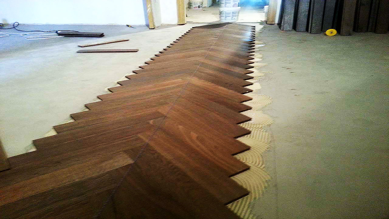 Este parqué se encoló al suelo, mediante cola de un componente de la casa Tover.