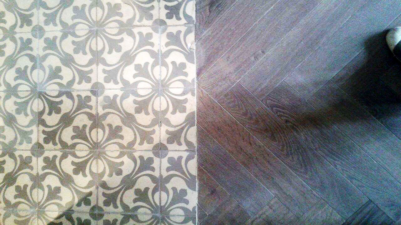 Previamente se le aplicó a todo el suelo una capa de autonivelante de la marca Ardex para dejar el suelo totalmente liso.